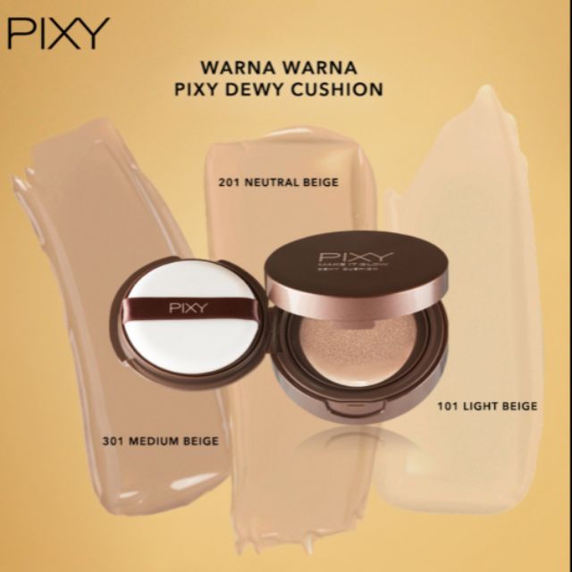 Pixy make it glow dewy cushion. Pixy make it glow dewy cushion. 101 light beige, 201 neutral beige, dan 301 medium beige. Huhu pengen keduanya, bagusan mana ya?