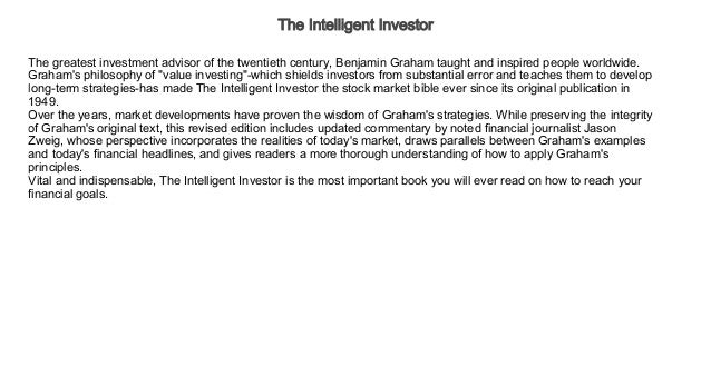 The definitive book on value investing. Cobb's commentary instead focuses on three other points: The definitive book on value investing. The greatest investment advisor of the twentieth century, benjamin graham taught and inspired people vital and indispensable, the intelligent investor is the most important book you will ever read on how to reach your financial goals.